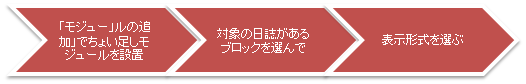 • 唯一、通常のモジュールとは異なるのは、配置するページにはすでに日誌モジュールが配置されていること、が前提条件となっている点です。
